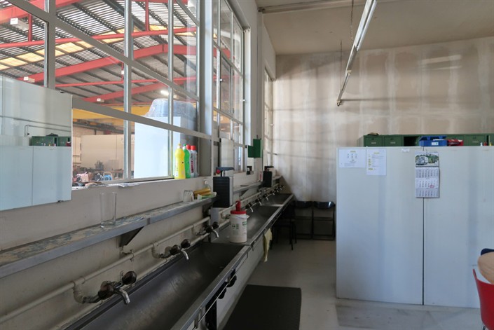 Die Halle wird von einem metallverarbeitenden Betrieb genutzt. Die Kräne sind noch in Betrieb, die Fläche wird durch eine Trennwand auf ca. 750 m2 beschränkt, das spätere Bistro ist ein Aufenthaltsraum mit Waschrinnen und Garderobenkästen. Es gibt noch keinen Zugang zur späteren WC-Anlage - dieser Block ist nur von der Halle 3 aus zugänglich.