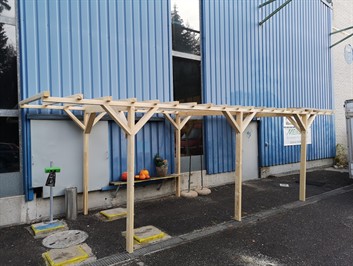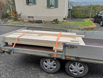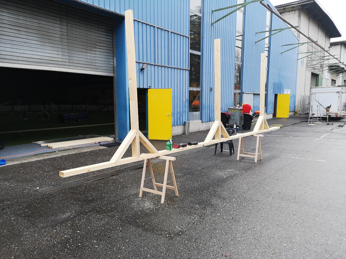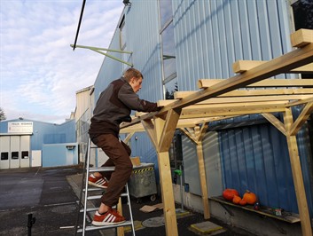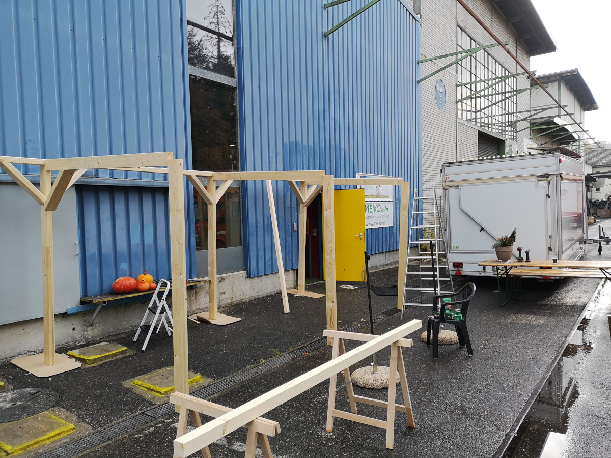 Im Herbst zeigt sich schnell, dass es vor dem Eingang einen Unterstand braucht. Zusammen mit Mike Gasser wird eine Konstruktion geplant und errichtet.