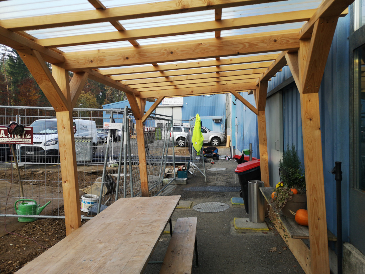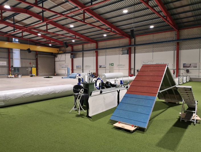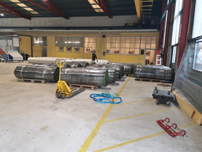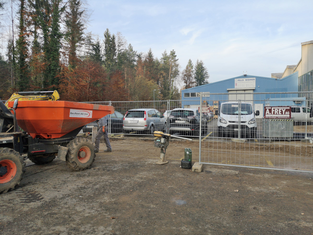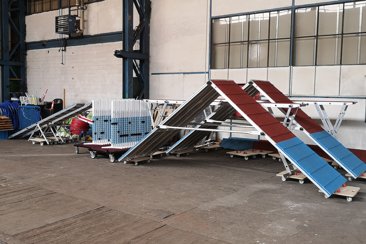 Nach den Aufräumungs- und Entsorgungsarbeiten folgt eine Phase der Austrocknung des Betonbodens. Da für die Lieferung des neuen Kunstrasens Lieferfristen bestehen, kommt in der hinteren Hallenhälfte ab Mitte September für rund vier Wochen ein temporär verlegter Kunstrasen als Provisorium zum Einsatz.