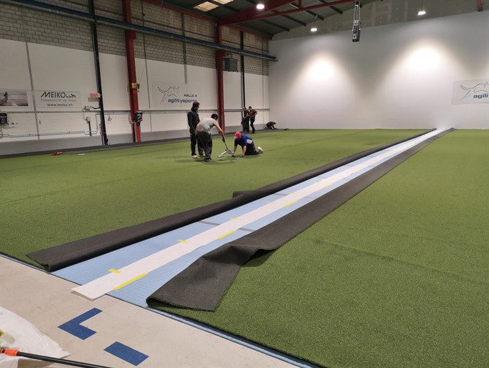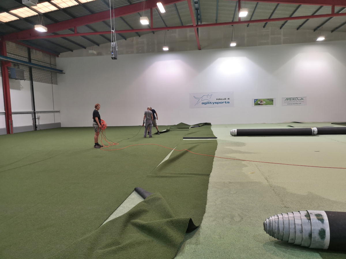 Dämmmatte und Kunstrasen müssen auf der gesamten Fläche von 1'250 m2 entsorgt und erneuert werden. Dies bedeutet einen nochmaligen und langen Unterbruch des gesamten Hallenbetriebs.