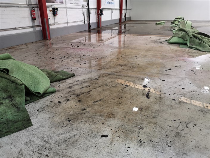 Im Gebiet Würenlingen fällt an diesem Tag extrem viel Regen und die Halle wird grossflächig geflutet! Die Nerven liegen bei allen blank - nicht nur bei uns, sondern auch bei den eingemieteten Trainerinnen und deren Kunden.
